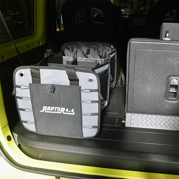 Borsa organizer Raptor 4×4 per baule auto; modello pieghevole, presenta all’interno diversi separatori per organizzare con ordine il bagagliaio del veicolo.